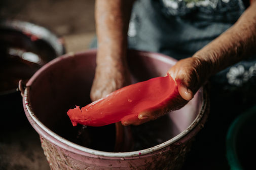 Artistic Style: Casa Viviana candles are known for their intricate, hand-sculpted designs and vibrant colors. Crafted from pure beeswax, they often feature floral motifs, lace-like patterns, and elaborate forms that transform each candle into a work of art. The vibrant hues are achieved using natural dyes, such as cochineal for reds, indigo for blues, and pericón flowers for yellows, reflecting both the colors of Oaxaca’s landscape and its ancestral knowledge. Each piece carries the essence of Zapotec heritage combined with the personal creativity of the artisans, making every candle unique.